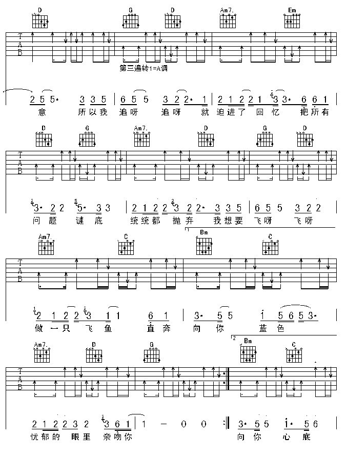 - [歌谱,吉他谱] 飞鱼