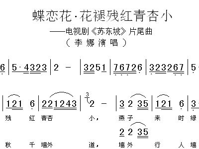 蝶恋花 花褪残红青杏小 电视剧 苏东坡 片尾曲