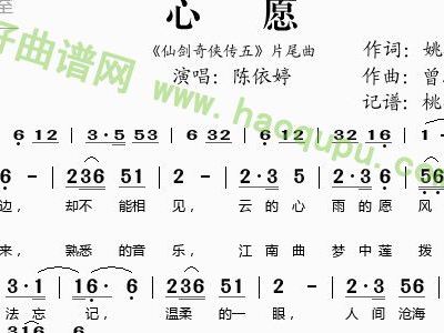 - [歌谱] 心愿 陈依婷 仙剑奇侠传五 片尾曲