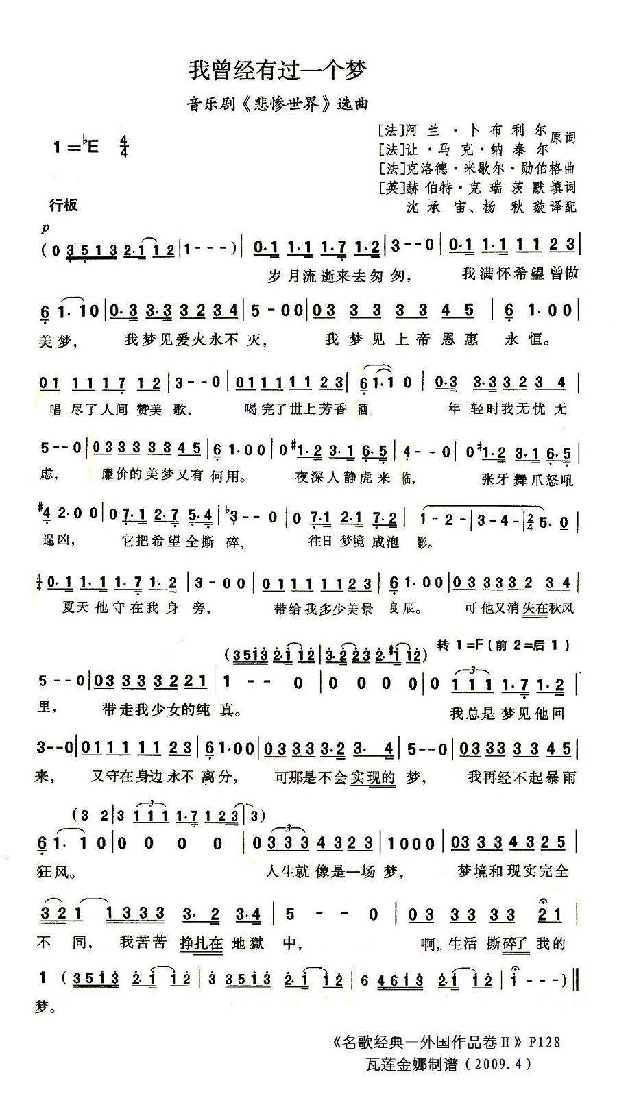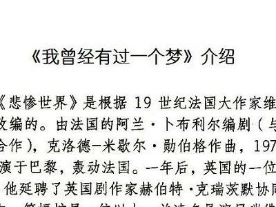 我曾经有过一个梦 音乐剧 悲惨世界 选曲