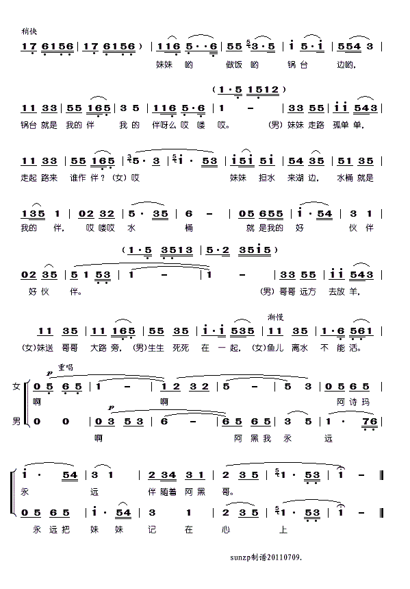 马铃儿响来玉鸟儿唱 阿诗玛 插曲 对照