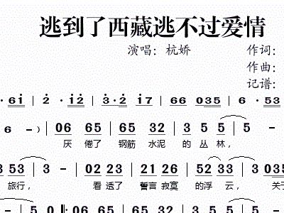 - [歌谱] 逃到了西藏逃不过爱情 杭娇