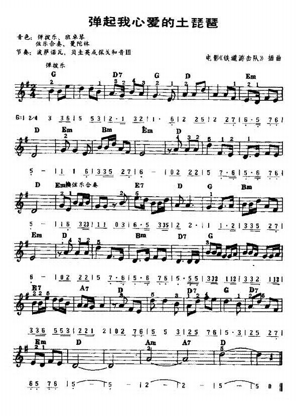- [电子琴谱,琵琶谱] 弹起我心爱的土琵琶