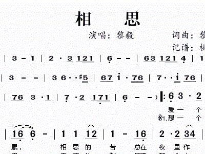 演唱: 黎毅 词曲: 黎毅 记谱/传谱: 桃李醉春风