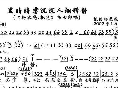 > 黑暗暗雾沉沉人烟稀静 杨家将 托兆 杨七郎唱段 琴谱