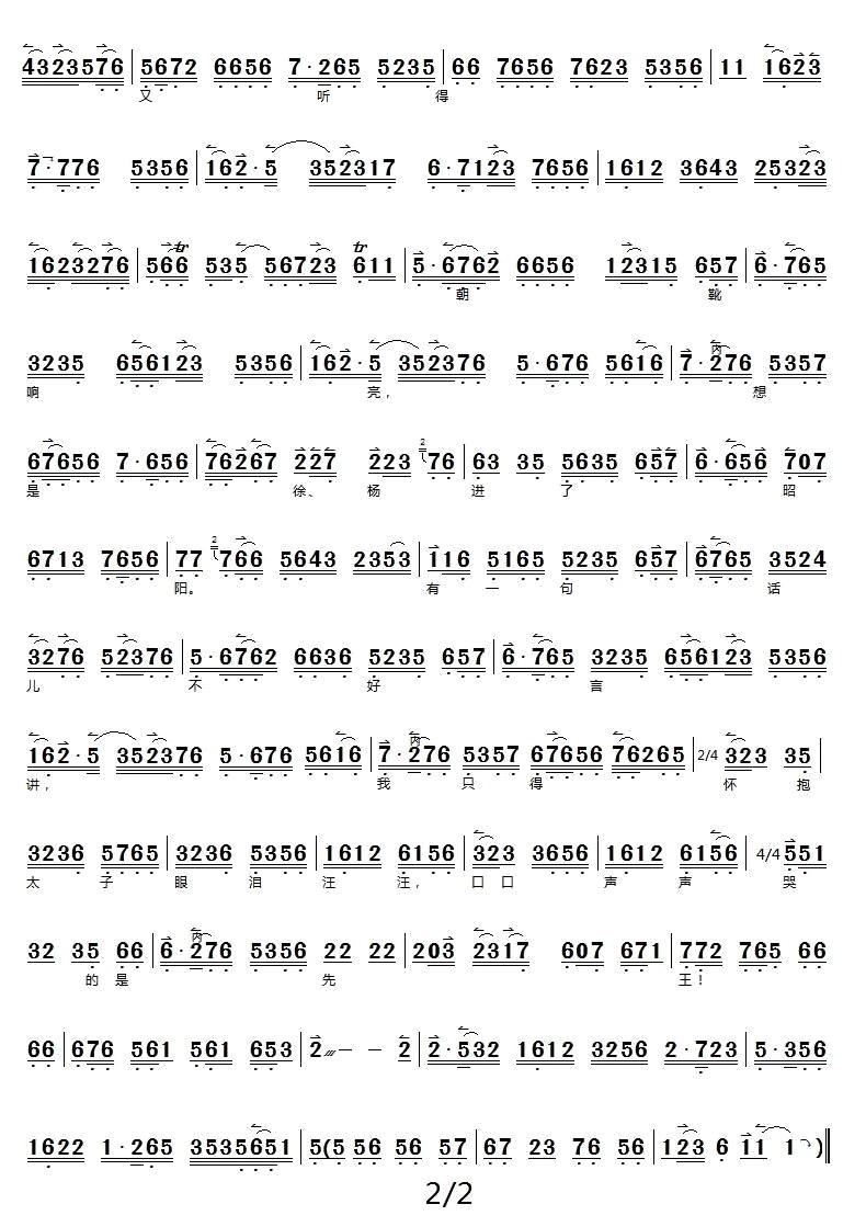 自那日与徐杨决裂以后 二进宫 选段 京胡伴奏谱
