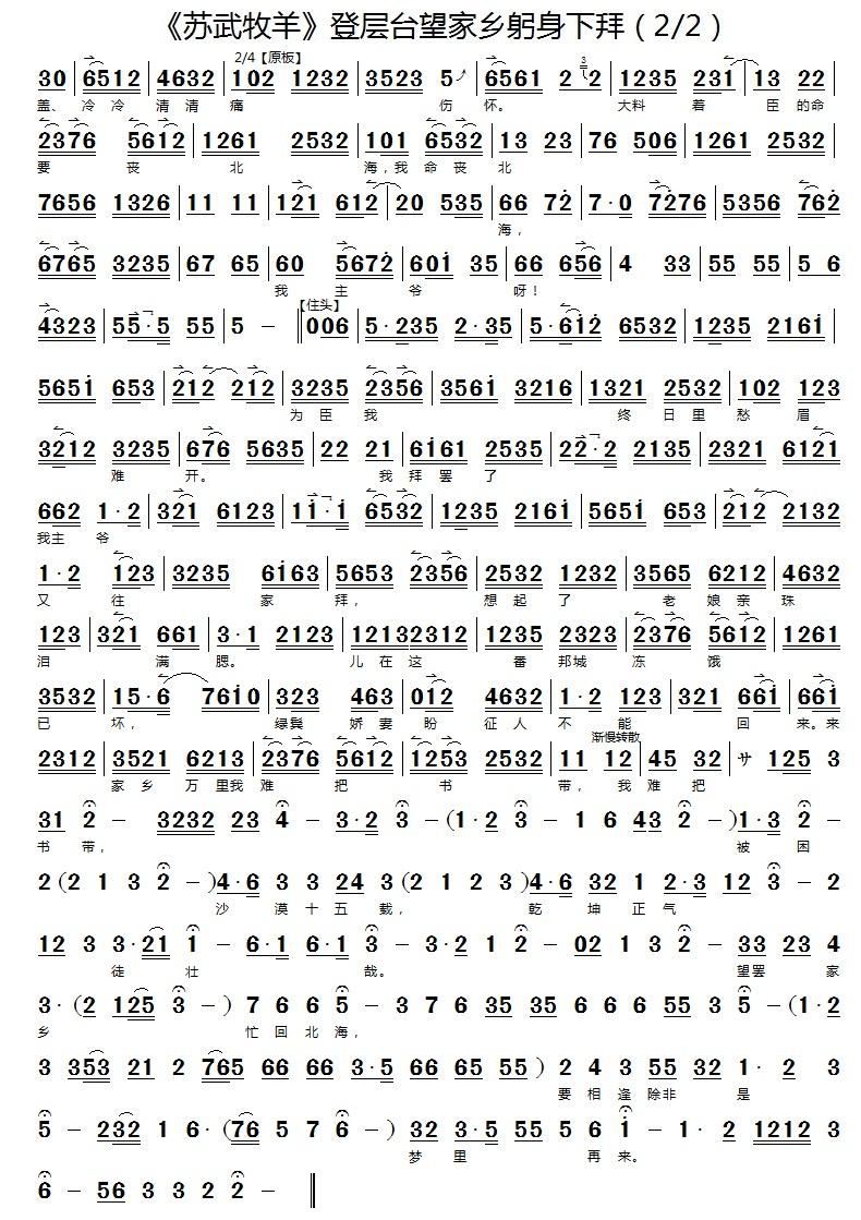 - [歌谱] 登层台望家乡躬身下拜 苏武牧羊 选段