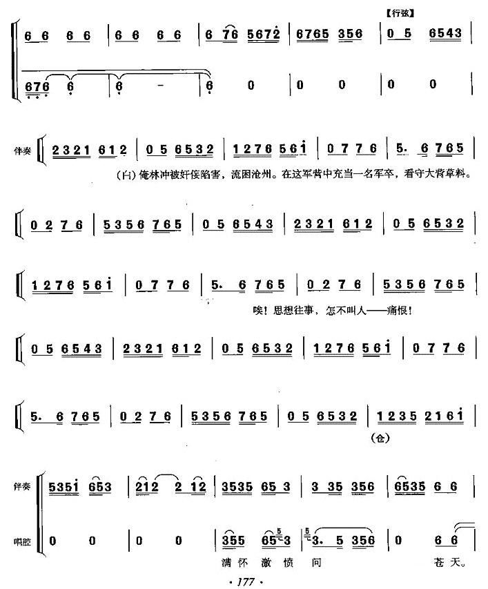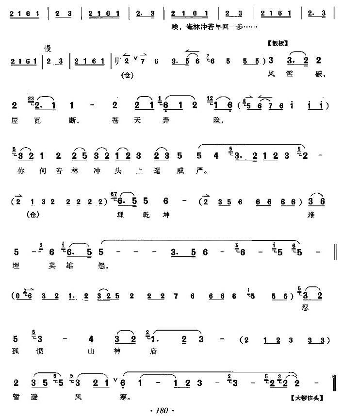 大雪飘扑人面 野猪林 林冲唱段 戏谱