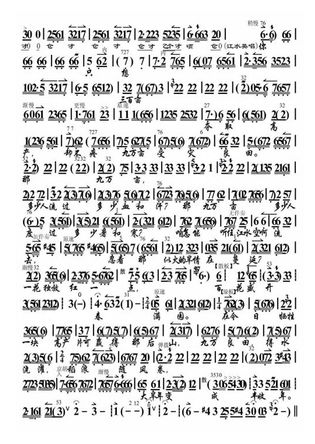 河北梆子 百花盛开春满园 龙江颂 江水英唱段 伴奏谱