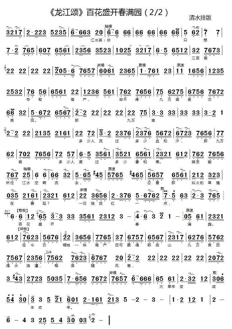 龙江颂 百花盛开春满园 伴奏谱