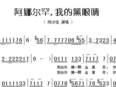 - [歌谱] 阿娜尔罕 我的黑眼睛
