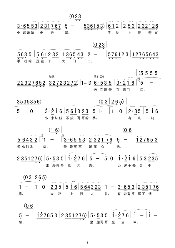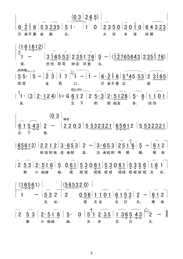 - [歌谱] 走西口