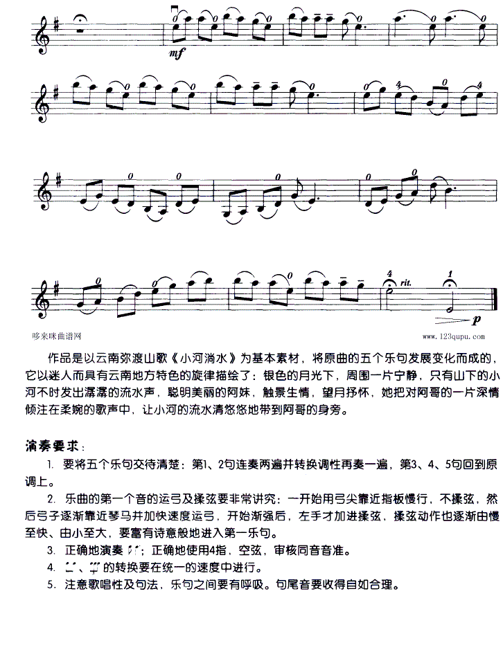 > 小河淌水 小提琴学习曲
