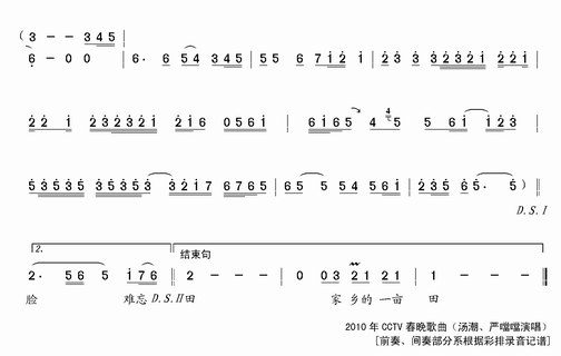 简谱网 > 歌谱 > 2010年CCTV春晚歌曲选 一亩田