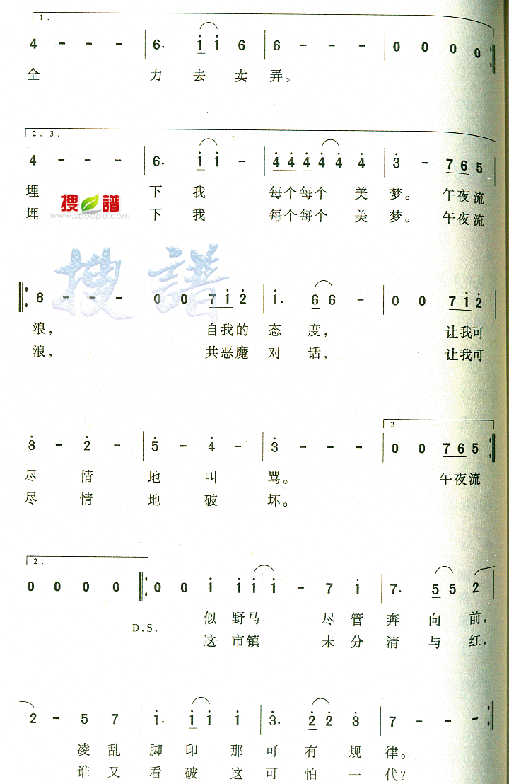 - [歌谱] 午夜流浪