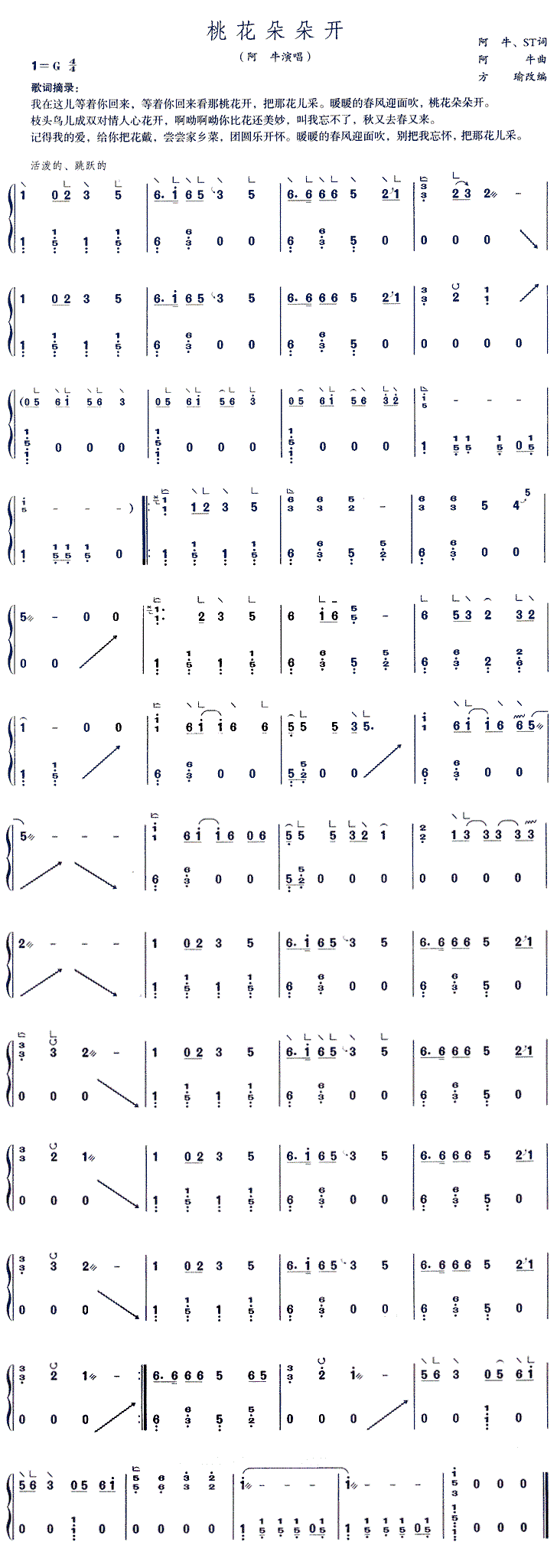 - [歌谱] 桃花朵朵开 阿牛