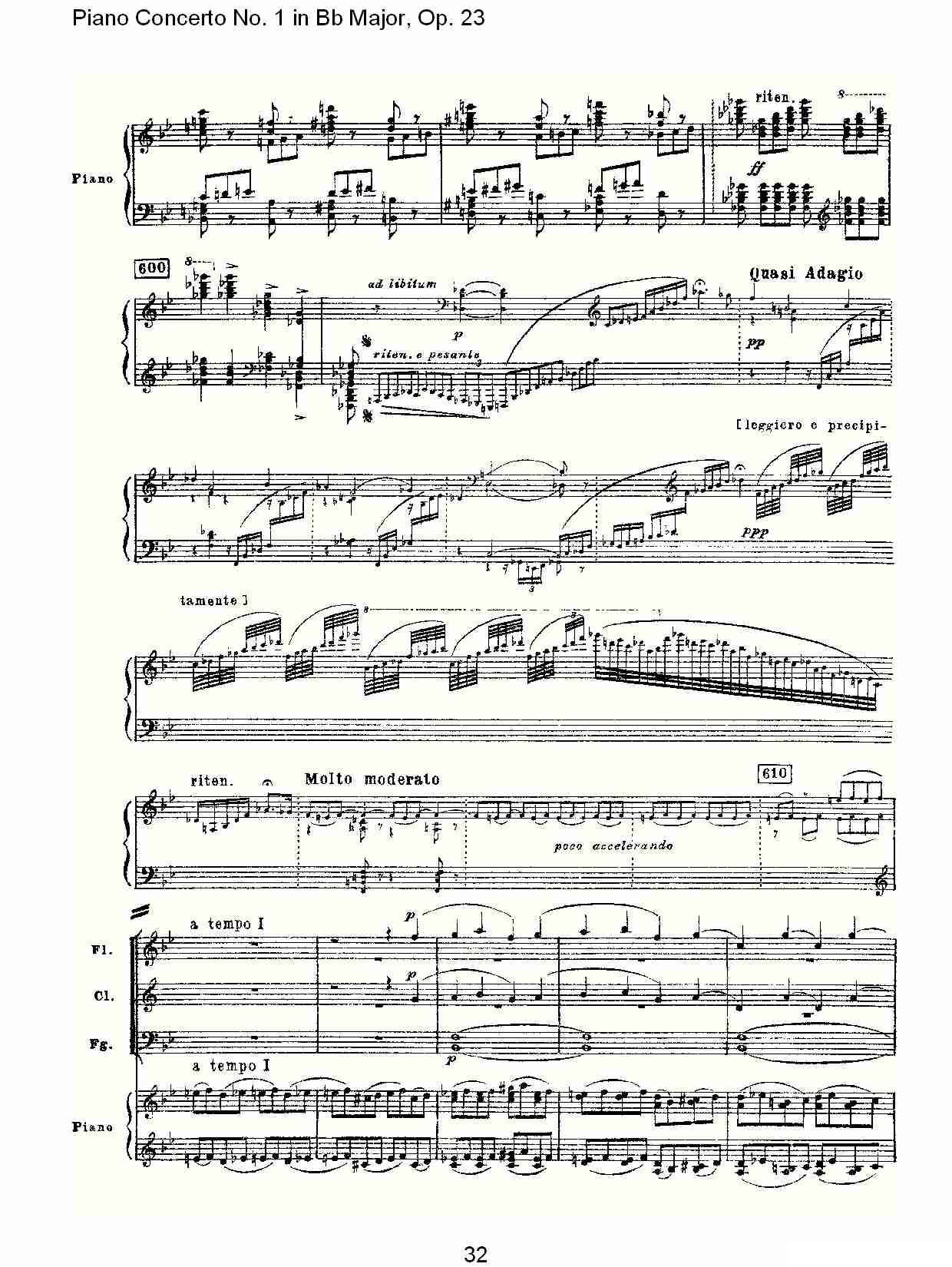 - [钢琴谱,总谱] Bb大调第一钢琴协奏曲 Op 23第二乐章 一