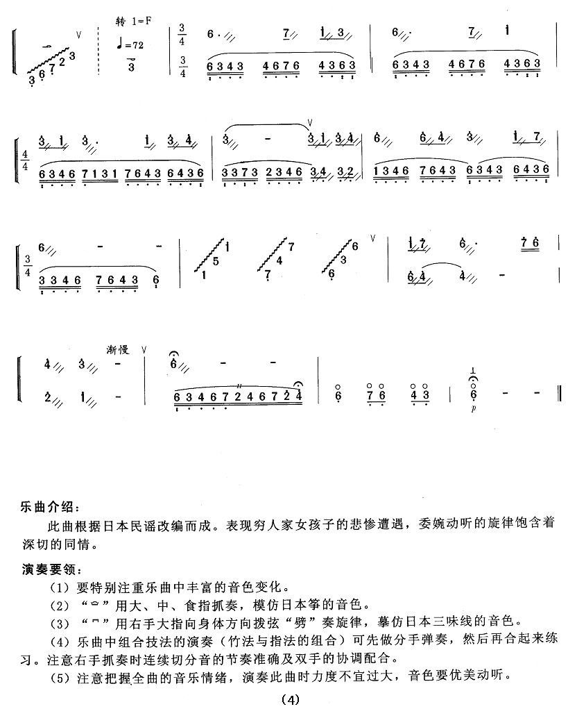 - [歌谱,扬琴谱] 五木摇篮曲