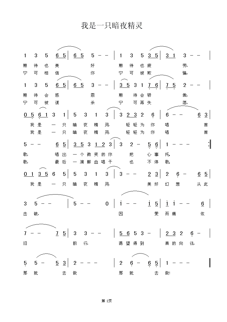 - [歌谱] 我是一只暗夜精灵