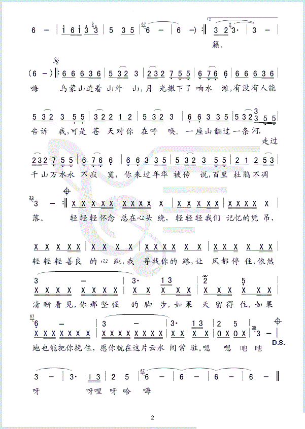 - [歌谱] 天蓝蓝