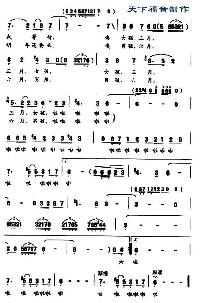 - [歌谱] 三月和六月