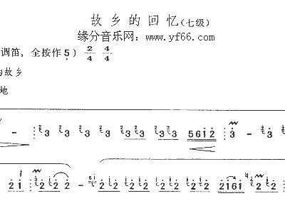 - [笛子谱,箫谱] 故乡的回忆 七级 笛萧谱
