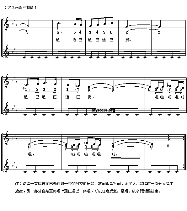 > 巴勒斯坦民歌 通巴曲 盛茵译配