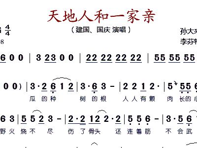 - [歌谱] 天地人和一家亲 建国 国庆