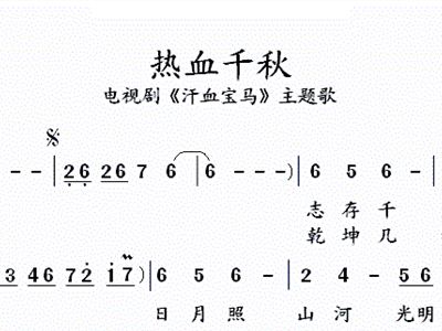 - [歌谱] 热血千秋 电视剧 汗血宝马 主题歌