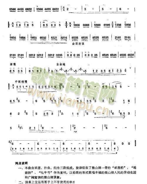 - [笛子谱] 微山湖船歌 民乐类 竹笛