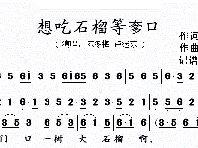 简谱网 > 歌谱 > 想吃石榴等奓口