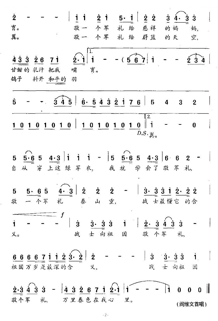 - [歌谱] 战士的军礼