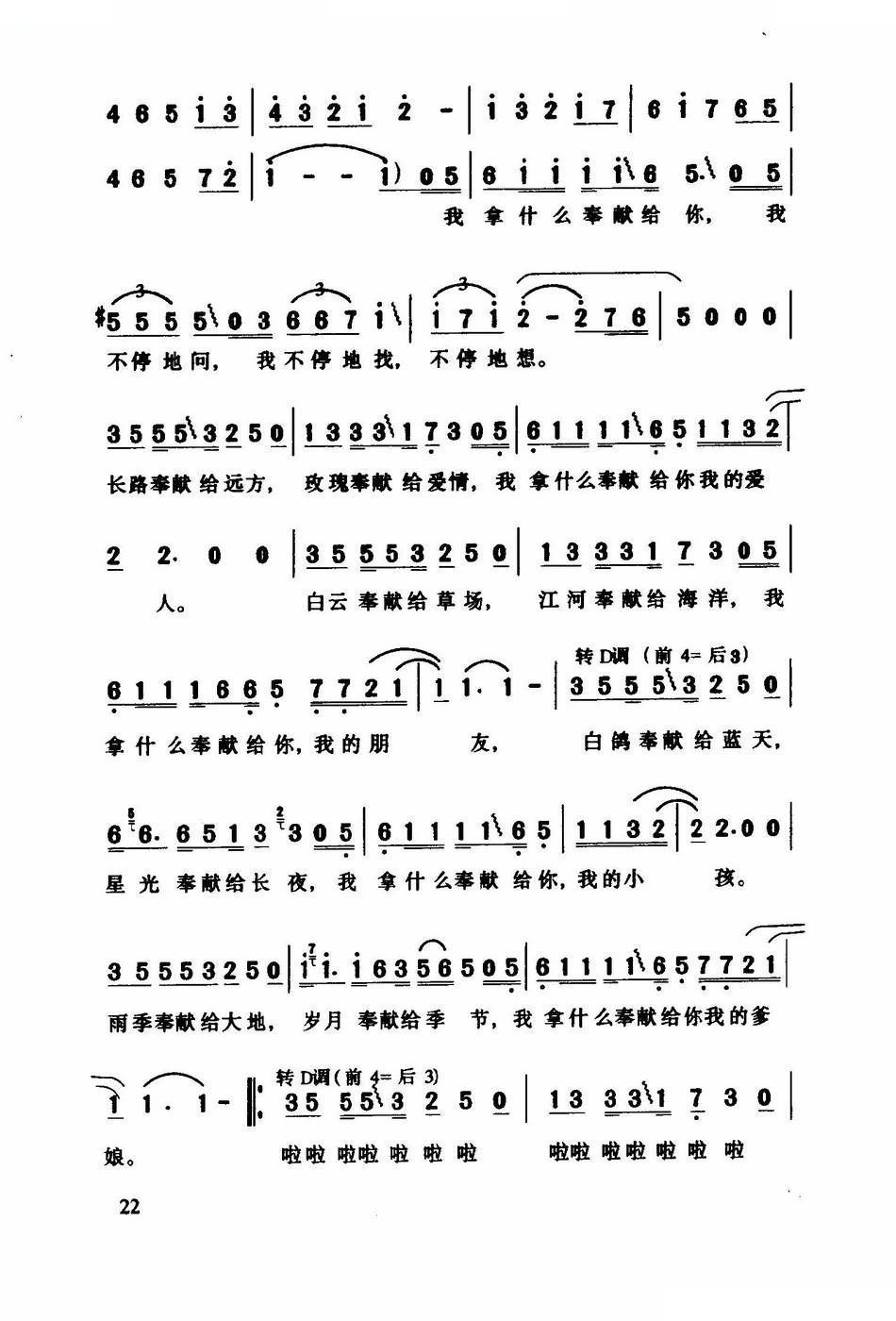 - [歌谱] 奉献