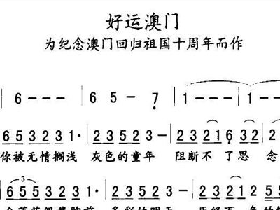 - [歌谱] 好运澳门