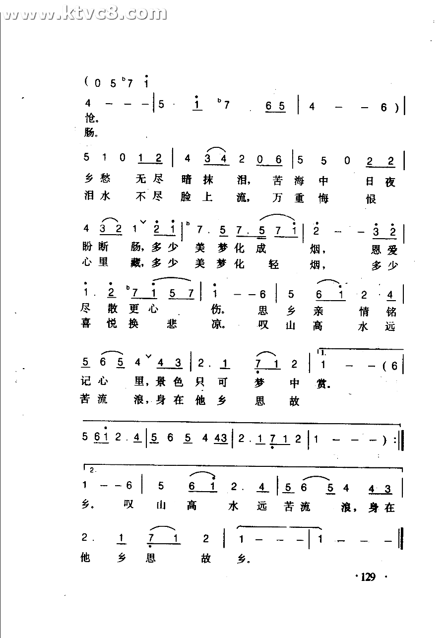 - [歌谱] 身在他乡思故乡 过埠新娘 插曲