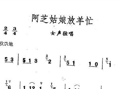 - [二胡谱,歌谱] 唱着歌儿去放羊 安徽民歌