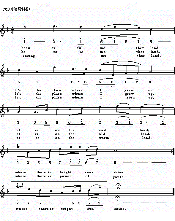 英译中文歌曲 My motherland 我的祖国
