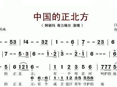 - [歌谱] 中国的正北方 阿丽玛 奇力格尔
