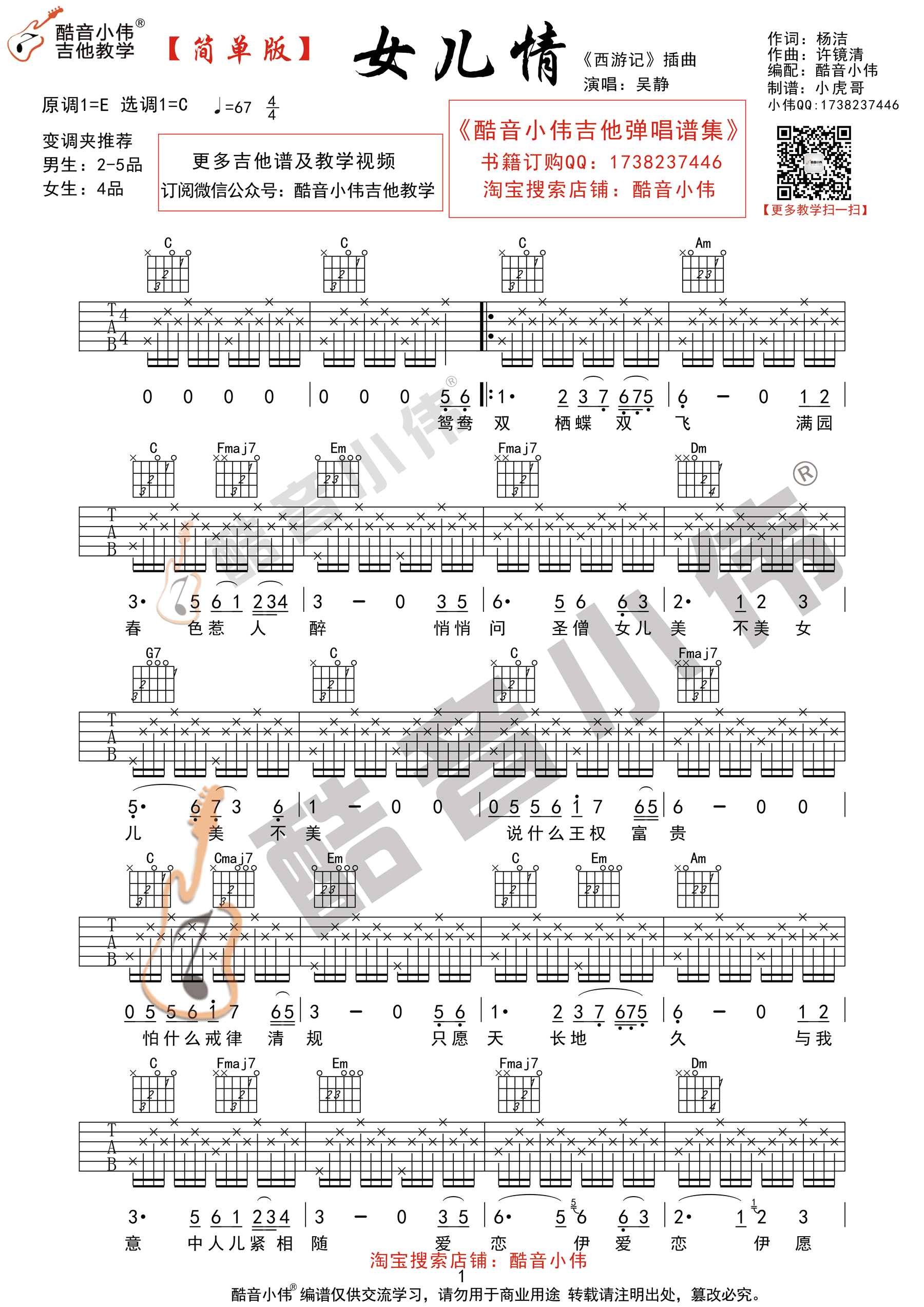> 女儿情 C调简单版 酷音小伟吉他教学