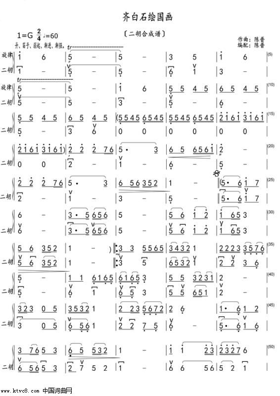 > 齐白石绘国画 二胡合成谱 1