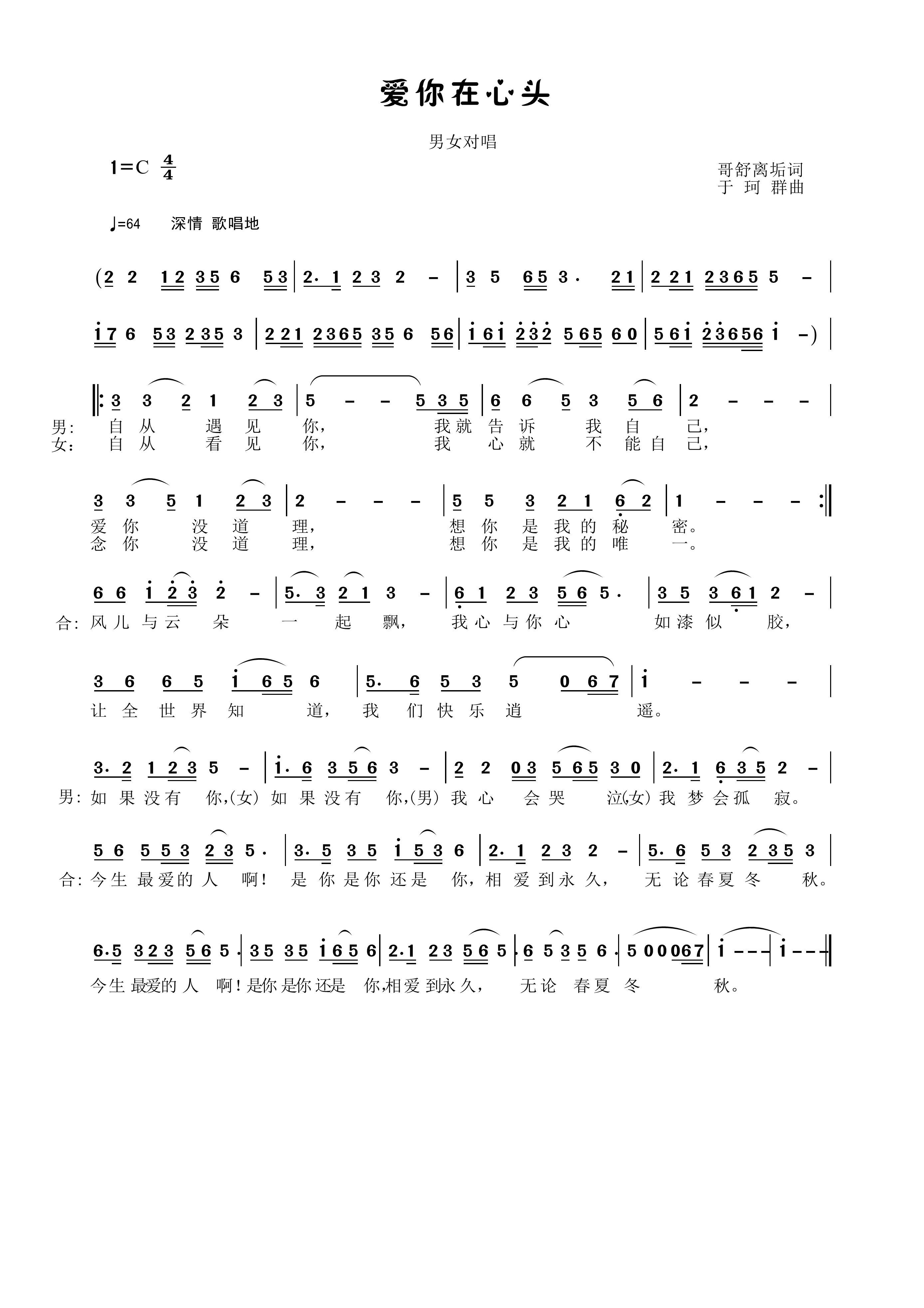 > 爱你在心头 男女声对唱