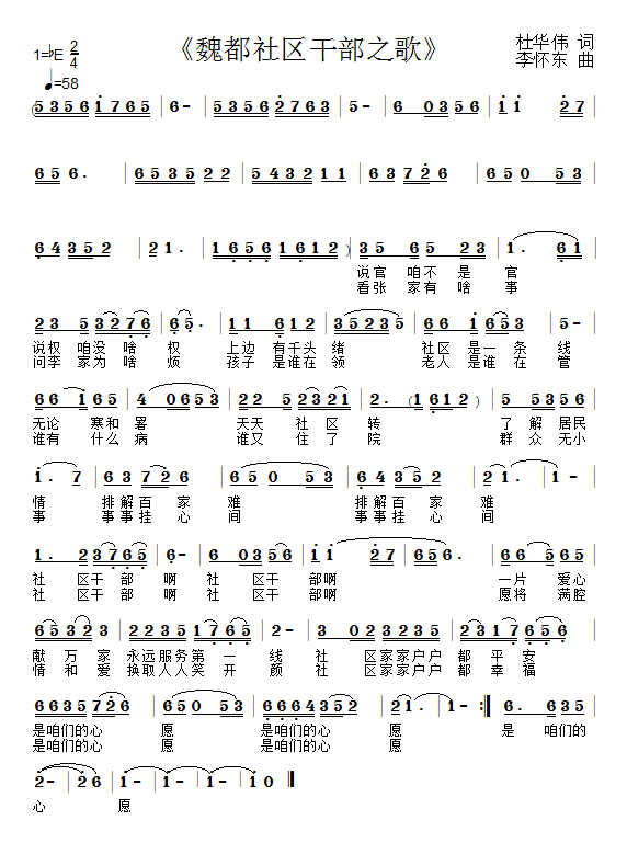 > 魏都社区干部之歌