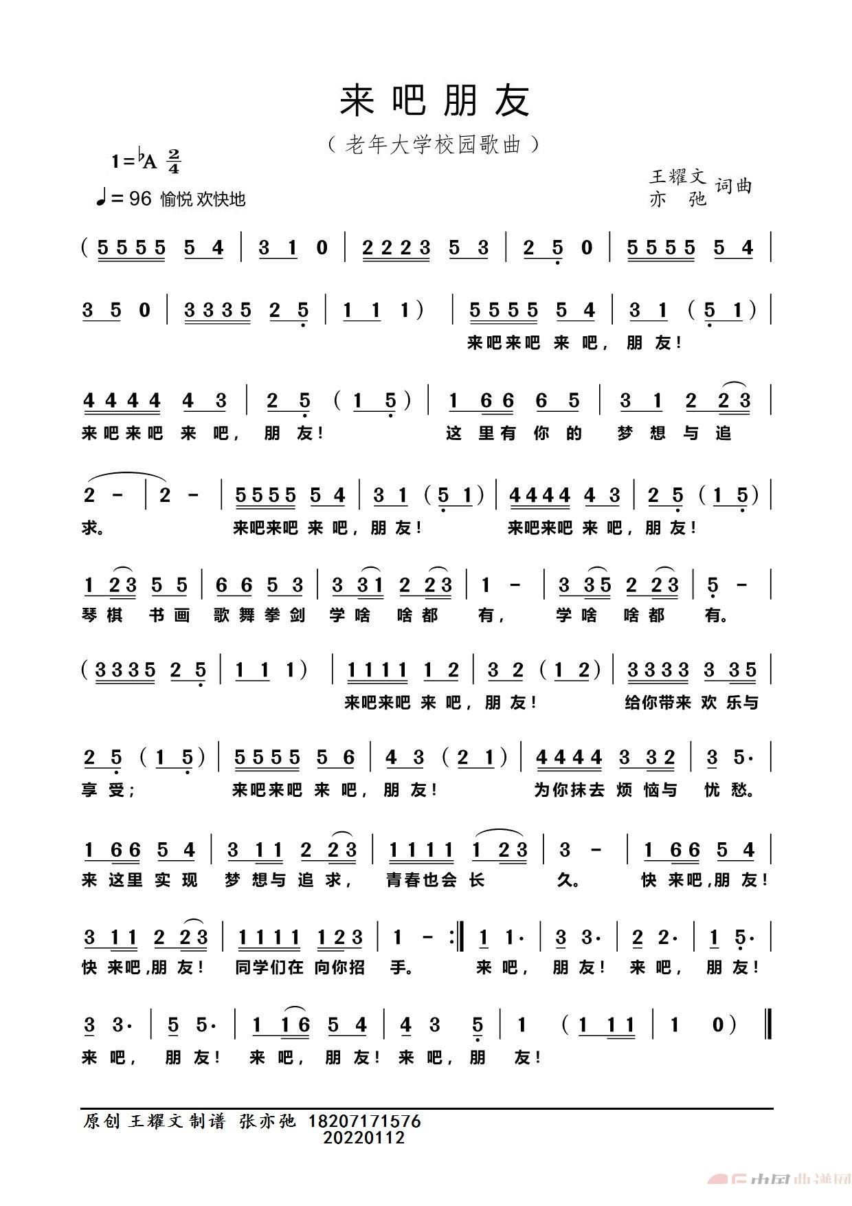 来吧朋友 亦弛原创 老年大学校园歌曲