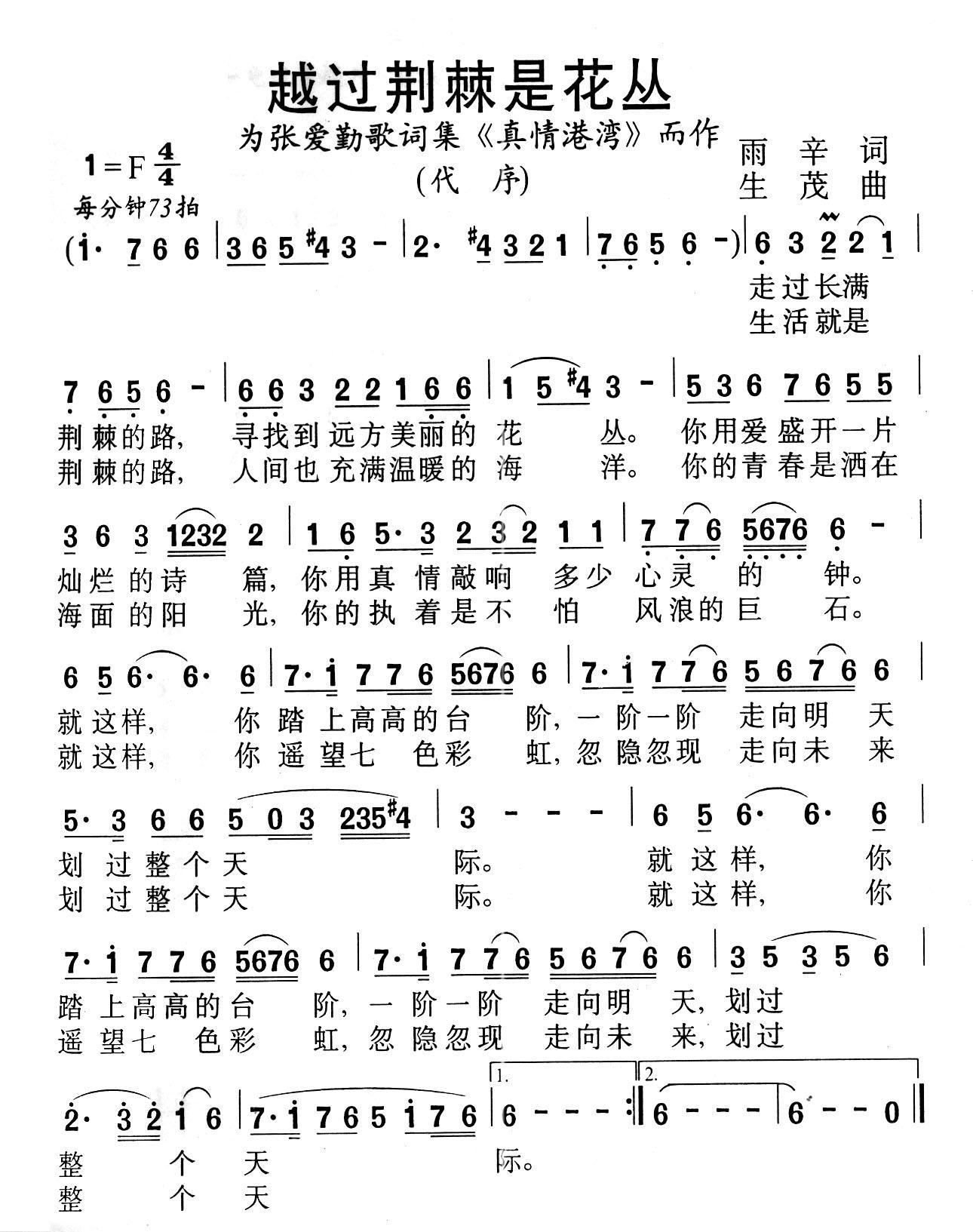 越过荆棘是花丛 歌曲选集 心灵放歌 而作