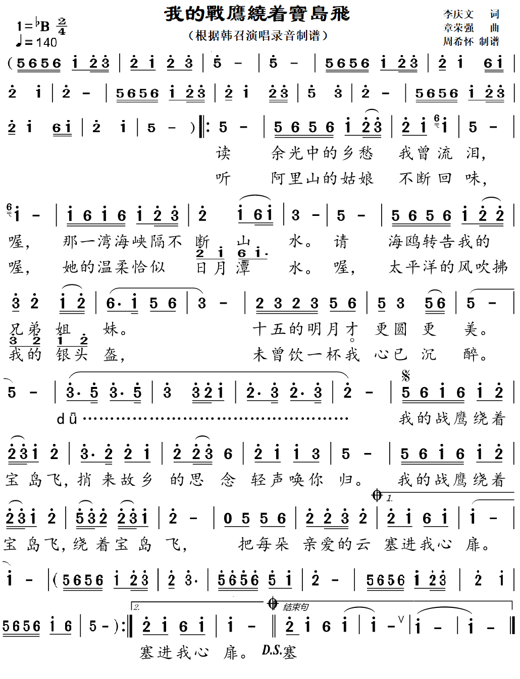 我的战鹰绕着宝岛飞 根据韩召演唱制谱