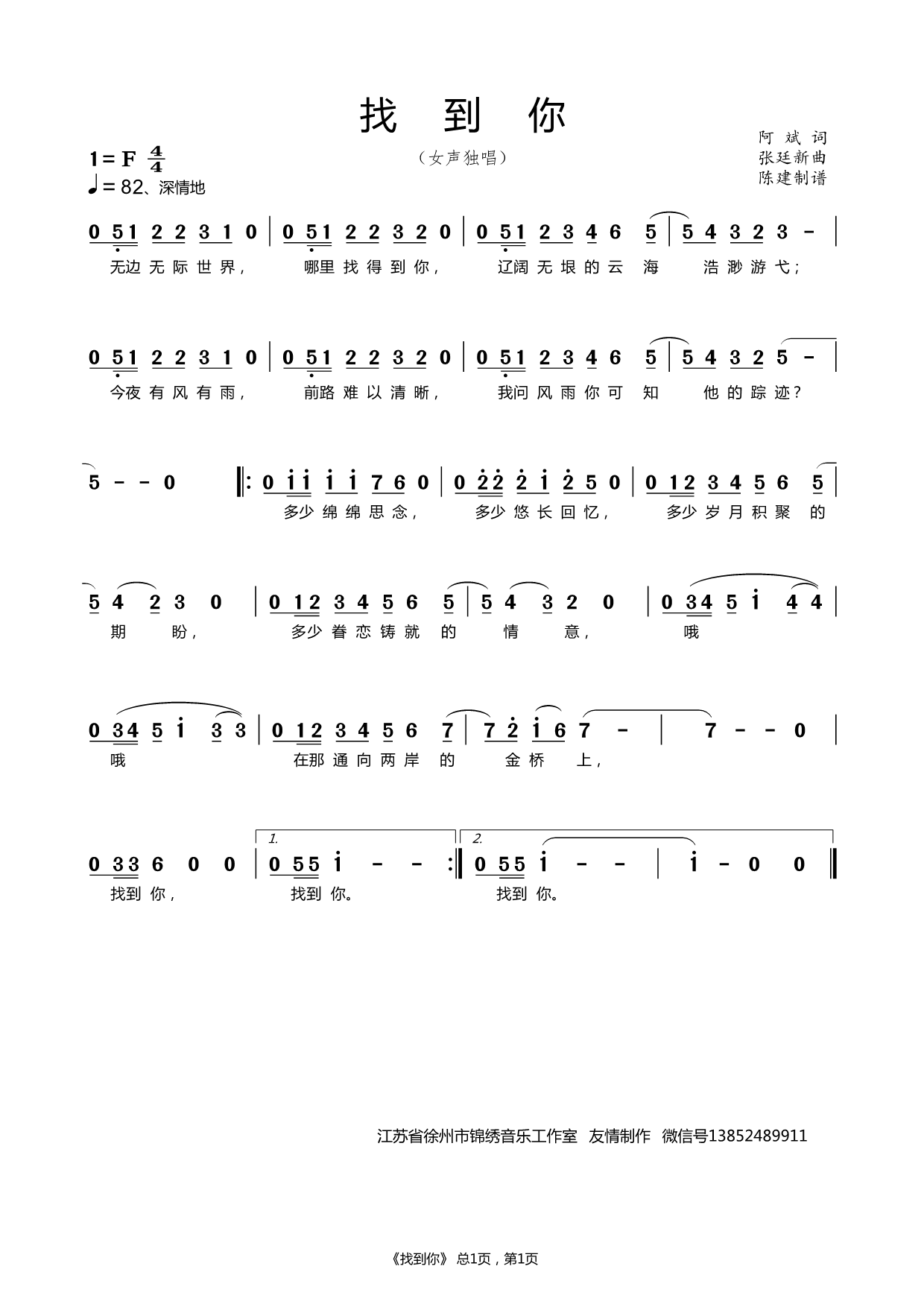 找到你 女声独唱