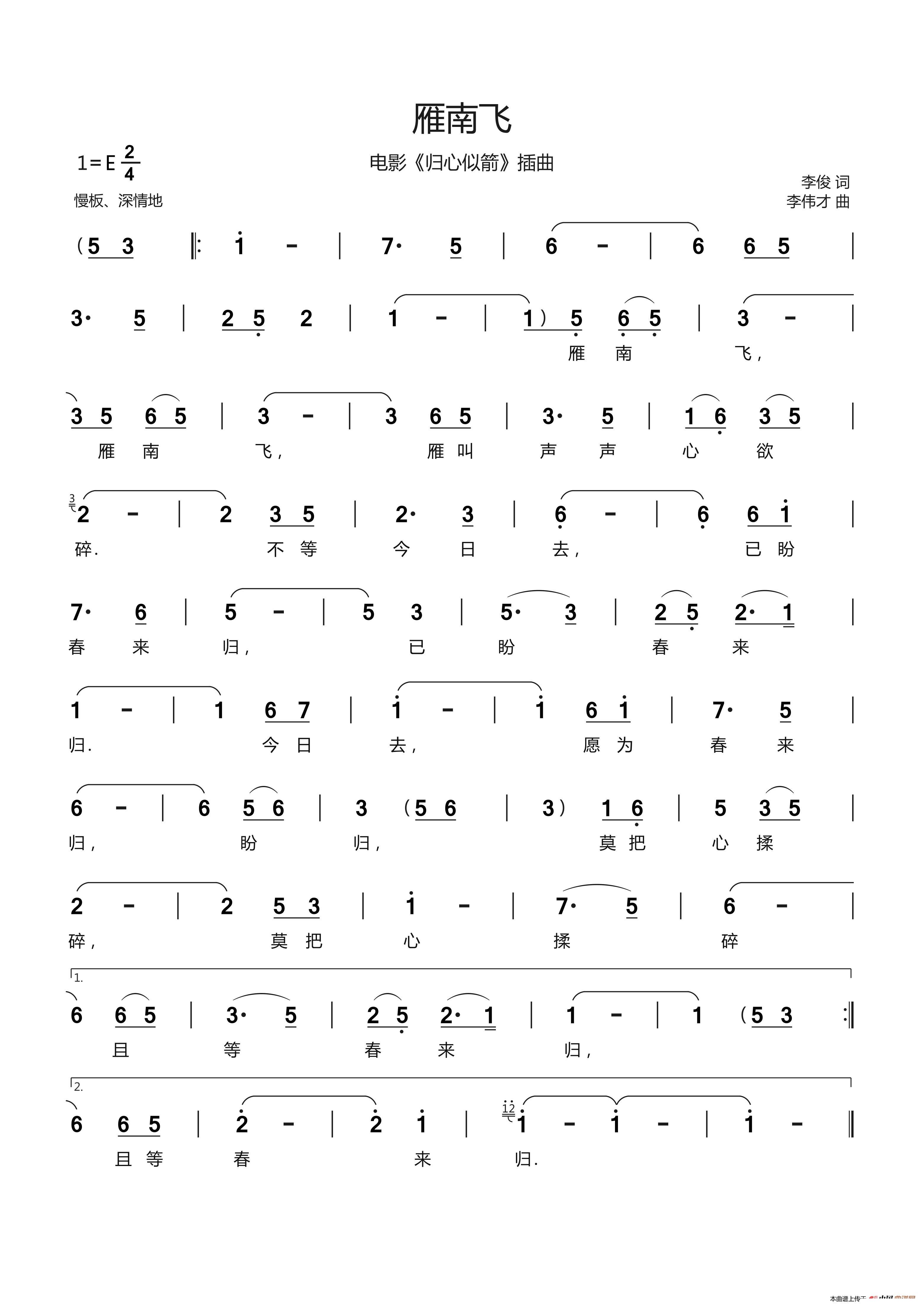 雁南飞 电影 归心似箭 插曲