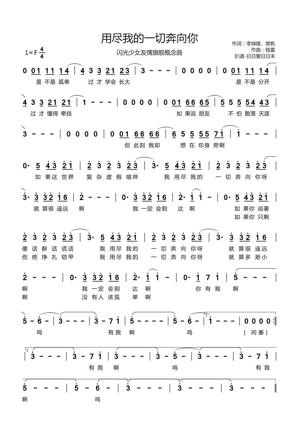 > 用尽我的一切奔向你 友情旗舰概念曲