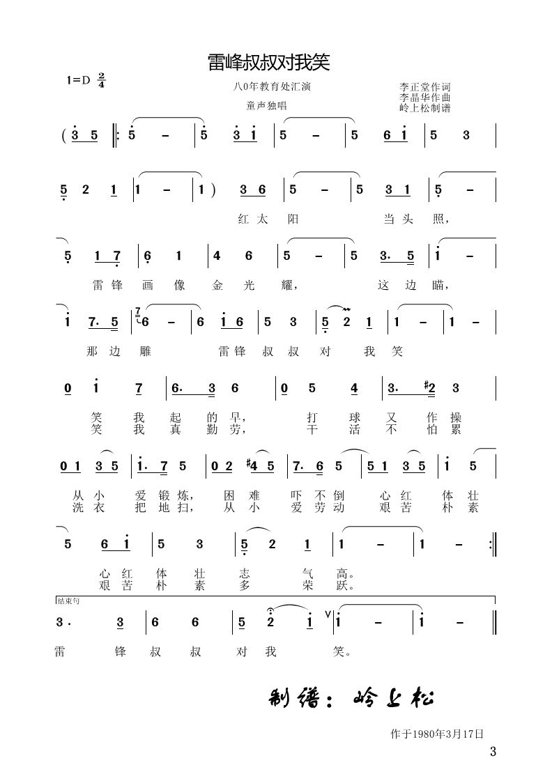 > 雷锋叔叔对我笑