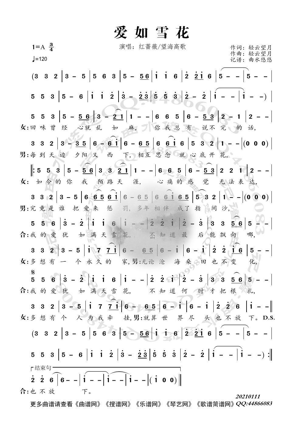 > 爱如雪花